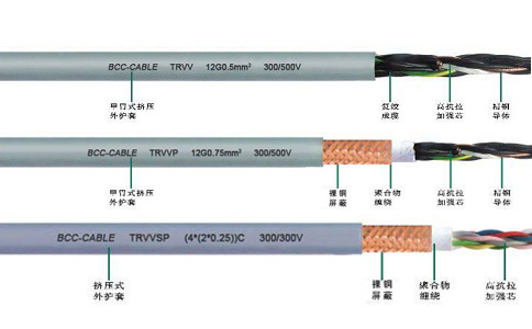 TRVV、TRVVP、TRVVSP電纜都是聚氯乙烯材質(zhì)的,即PVC護(hù)套柔性拖鏈電纜,但應(yīng)用場合卻不相同。在電纜所處環(huán)境狀態(tài)良好時,可以選擇TRVV;當(dāng)外界環(huán)境干擾時,可以選擇TRVVP;在外界干擾的環(huán)境進(jìn)行數(shù)據(jù)傳輸時,可以選擇TRVVSP。